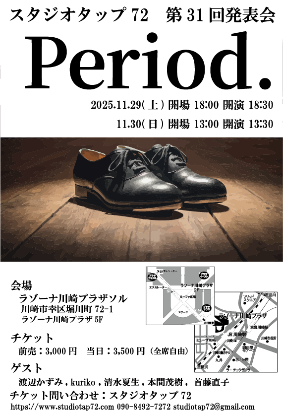 第31回発表会のお知らせ – 【スタジオタップ72】渋谷タップダンススタジオ|渋谷駅東口徒歩5分 きめ細かなクラスで、全くの初心者から上級者まで学べます